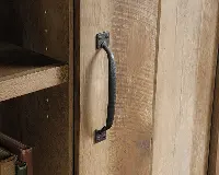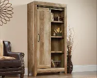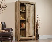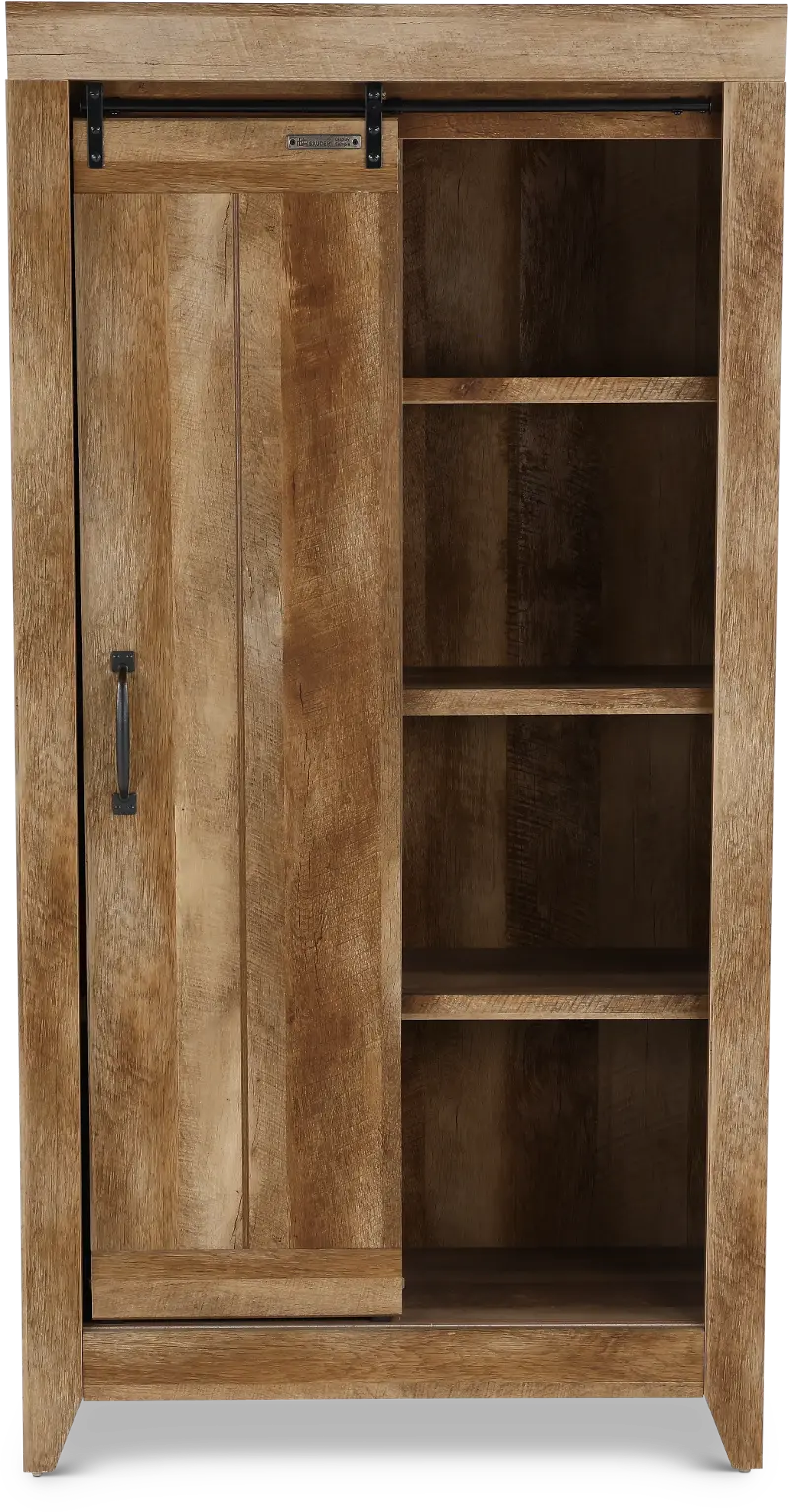 Behind the sliding door is hidden storage that includes six adjustable shelves so you can store books, pantry goods, towels and more! Finished in Craftsman Oak, this rustic inspired cabinet will look good and have your home clutter free in no time.