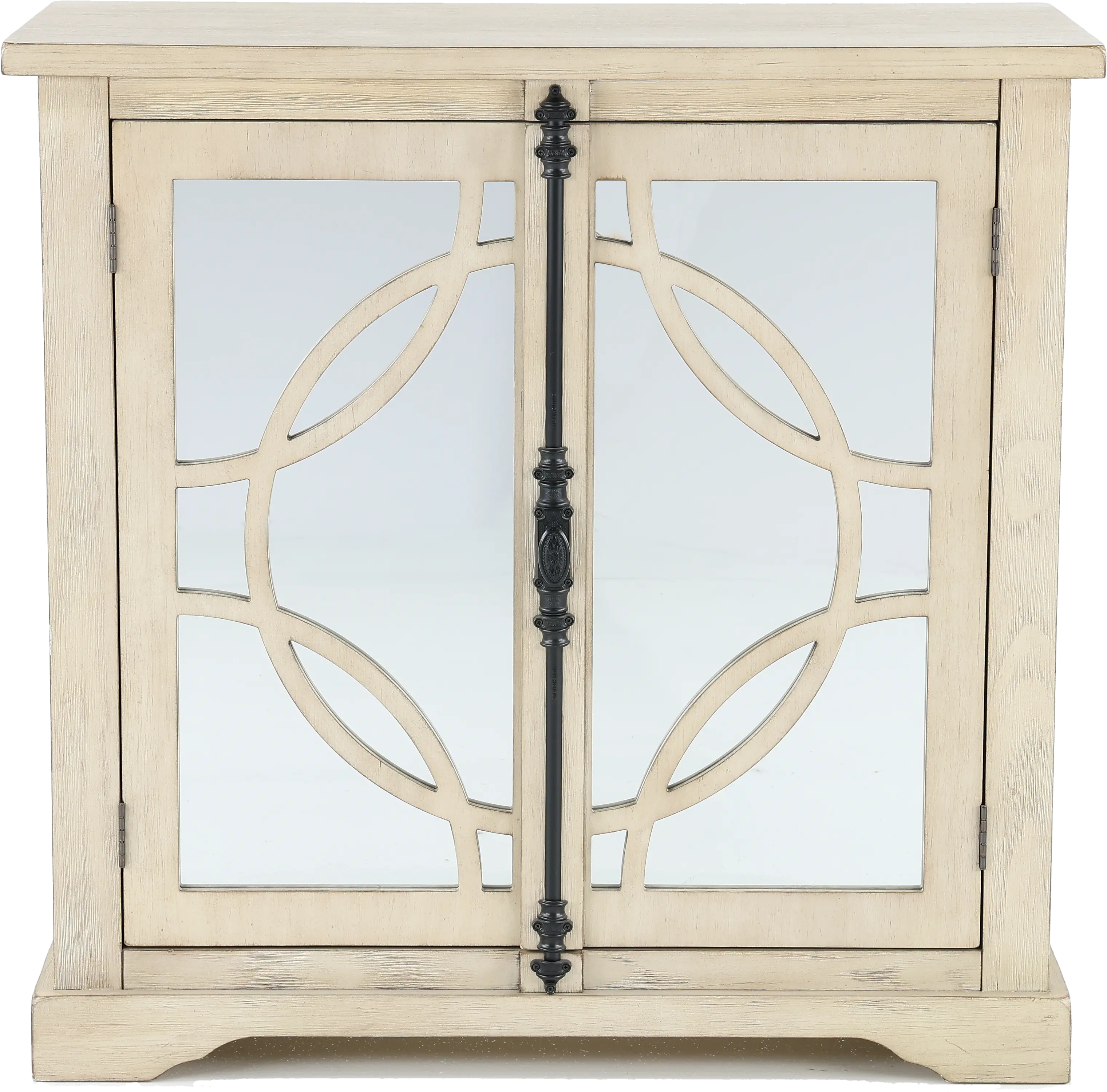 You will love the unique handles and fretwork over the glass doors. Its contemporary design will go beautifully with your other home decor. Place this Emma cabinet in your living room, entryway, bedroom, or even dining room.