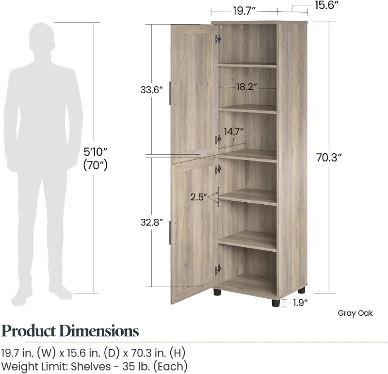 | Dimensions | 19.69"W x 15.55"D x 70.31"H |