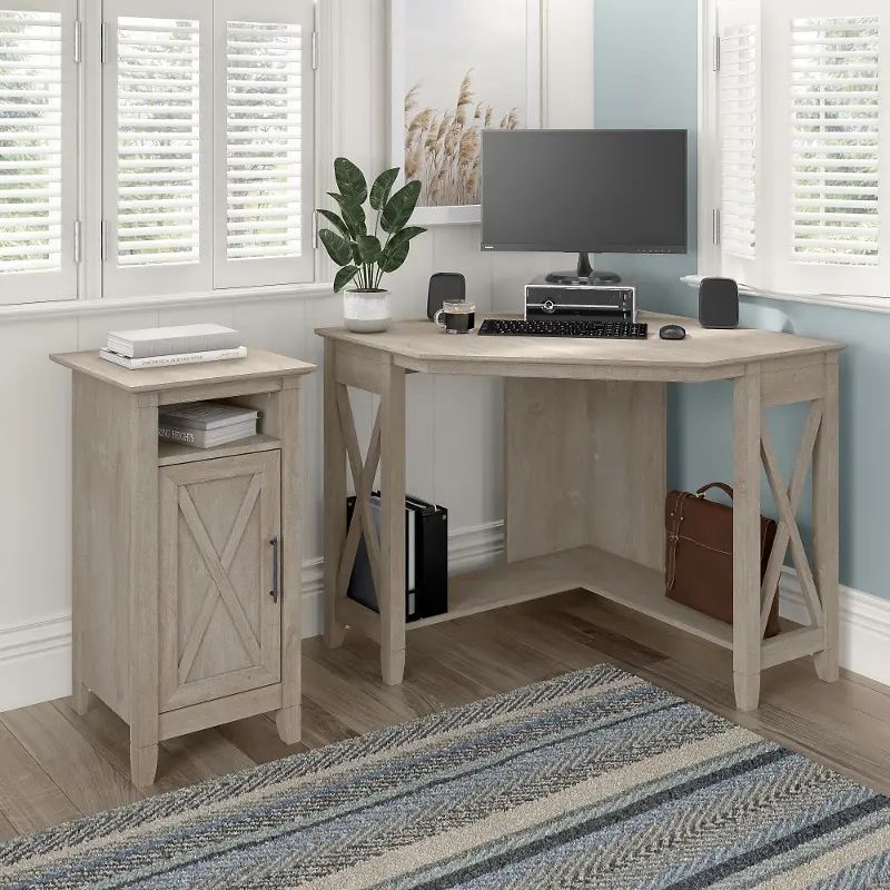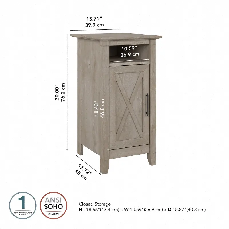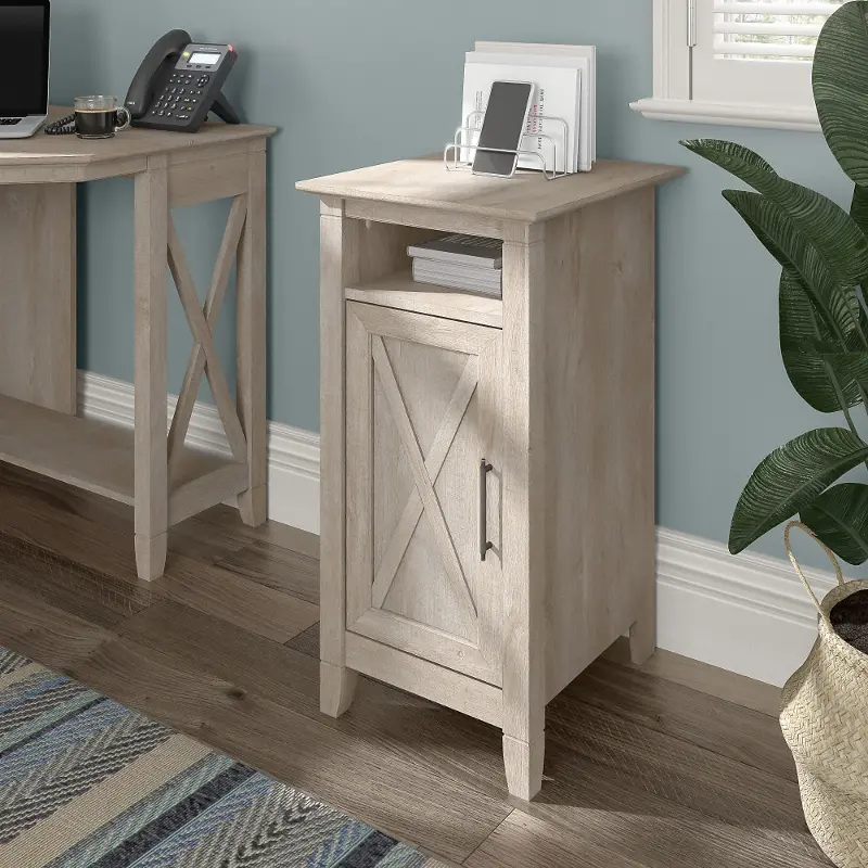 This small accent cabinet features a compact, versatile design that makes it a perfect choice for use in a home office, living room, entryway or virtually any other residential space. The surface can accommodate a small lamp, plant, pictures or decorations to give your space a personal touch. A post leg design, unique X pattern accent and a slightly distressed Washed Gray finish convey a casual appearance that works well with cottage, coastal and modern farmhouse style. e office, living room and bathroom furniture.