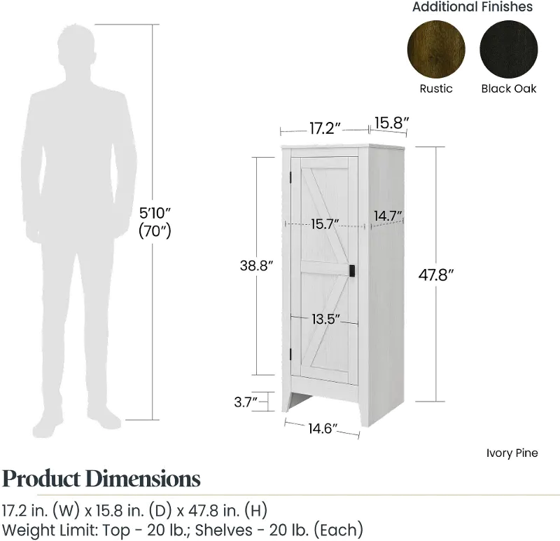 | Dimensions | 17.2"W x 15.8"D x 47.8"H |