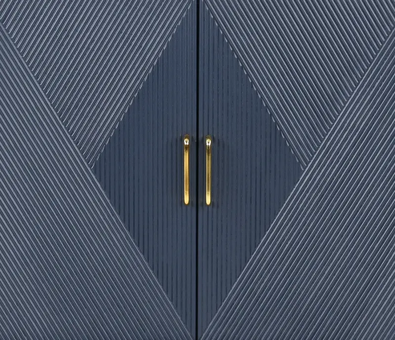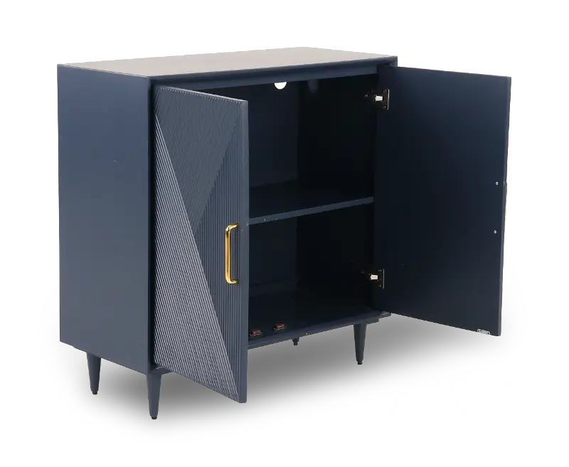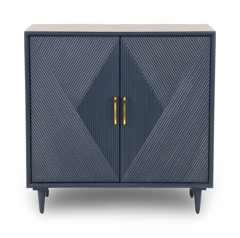 The front doors have a geometric beading design which adds beautiful detail. Open up the two doors and you will find a spacious, deep shelf that is perfect for storage. Place this anywhere in your home for style and functionality.