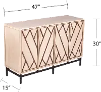 Sized just right for an entryway credenza or media console under your wall-mounted TV, this anywhere cabinet supplies ample storage for everything from fine china to your gaming collection, all while serving up classic art deco style with a high contrast twist. Tidy up with this two-tone accent cabinet greeting guests in the foyer, dishing up a dinner buffet in the dining room, or supplying extra linens in the hall.