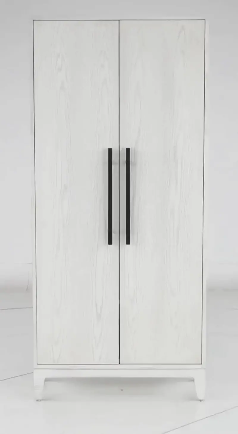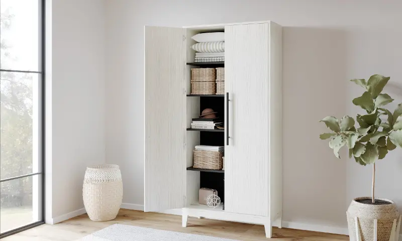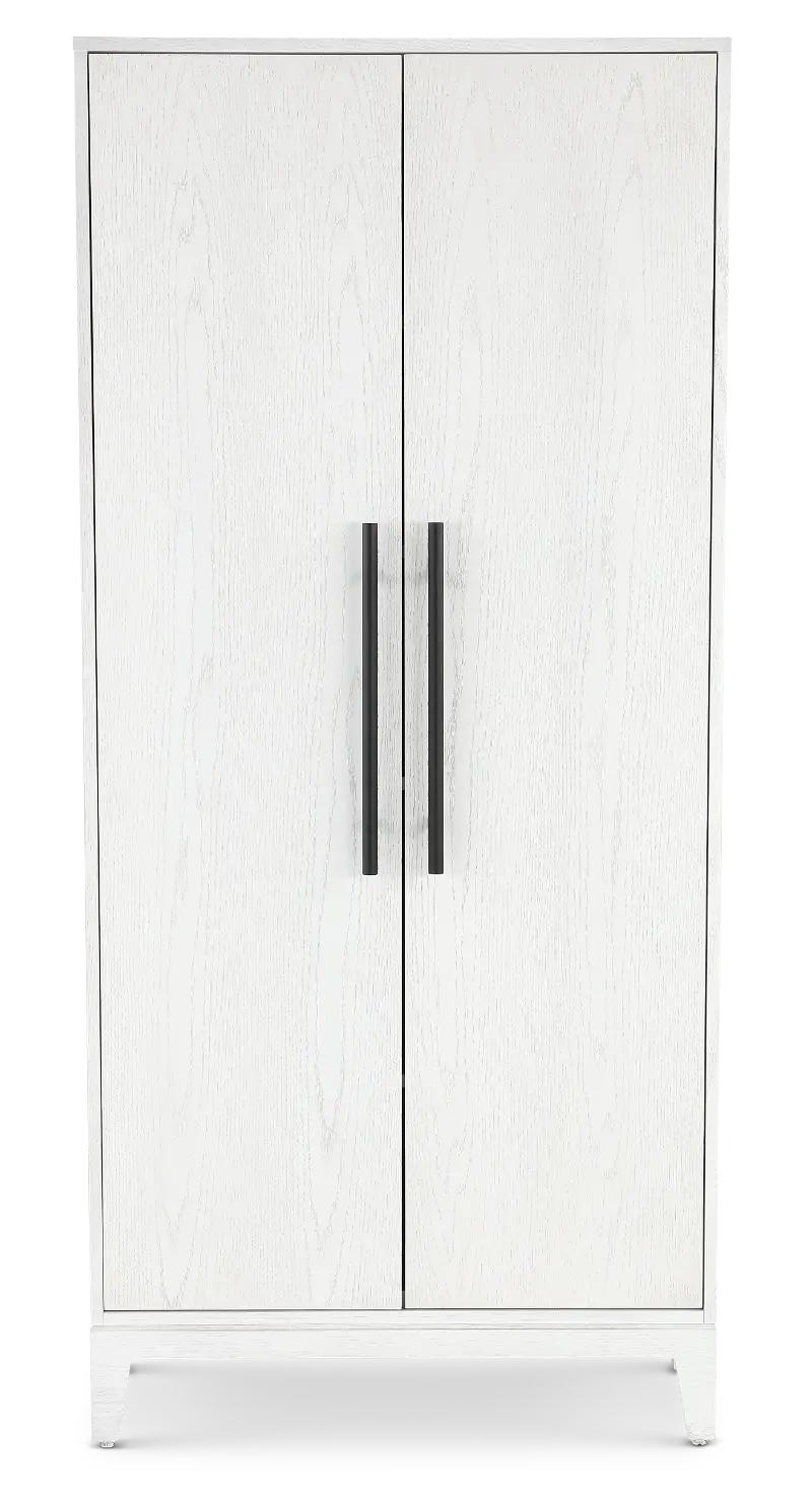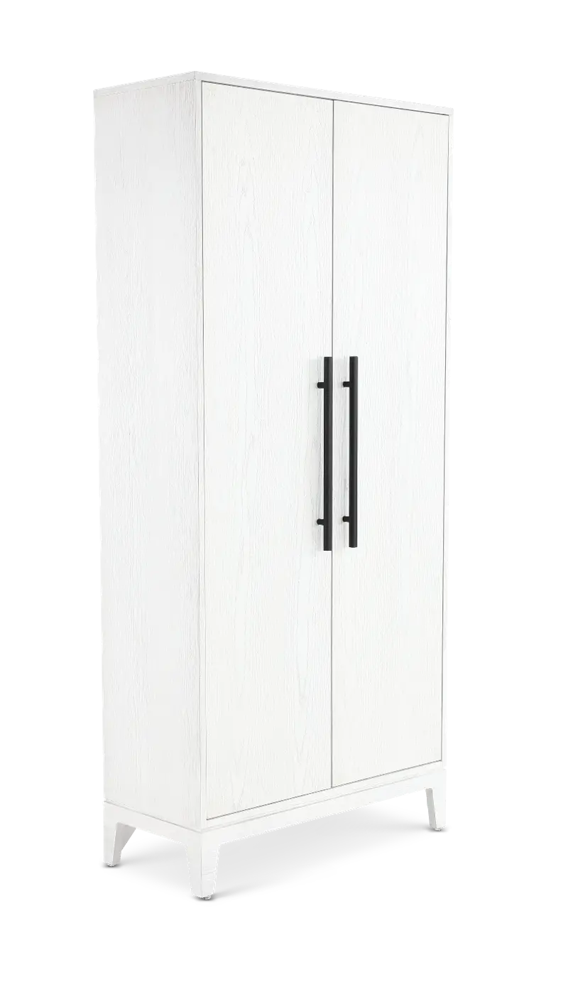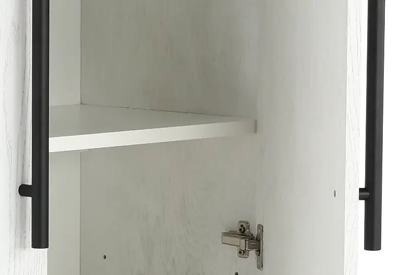 It pairs an unfussy silhouette with a fresh and inviting ivory oak finish. The 2 doors open to reveal 3 adjustable shelves, while sleek door handles add a contemporary touch.