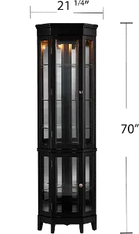 Elegantly display your collectibles while making use of spare space with this transitional, lighted corner curio.