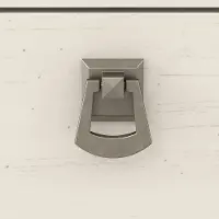 - Elegant metal drop pull hardware finished in tumbled pewter