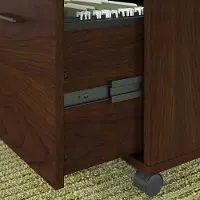 Enjoy its convenient box drawer that is perfect for personal items and supplies. The rolling cabinet includes full extension ball bearing slides on the file drawer to provide easy access to your letter size folders. The front casters lock for secure placement, and the file cabinet features a finished back so it can move to where you need it most. This collection offers the look of natural reclaimed wood with an authentic Bing Cherry finish with Aged Bronze hardware accents. Let the Key West Collection turn your home or office into an island escape. Choose Key West for a flexible, stylish office ensemble at an exceptional value. See the full collection for coordinating items available.