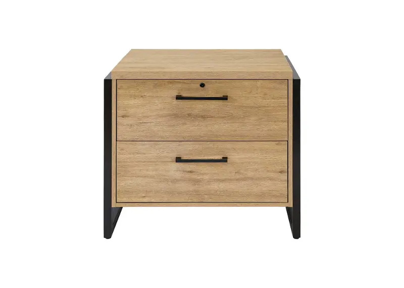 Two large locking drawers offer safety and storage for all the important documents you need in your day-to-day work life. The natural wood grain is accented by the black frame and hardware for a neutral modern design. Use this piece on its own to add more storage to your office, or pair it with the rest of our Mason collection for a full home office design!
