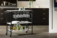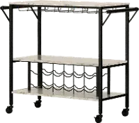 Maliza White Faux Marble and Black Bar Cart - South Shore