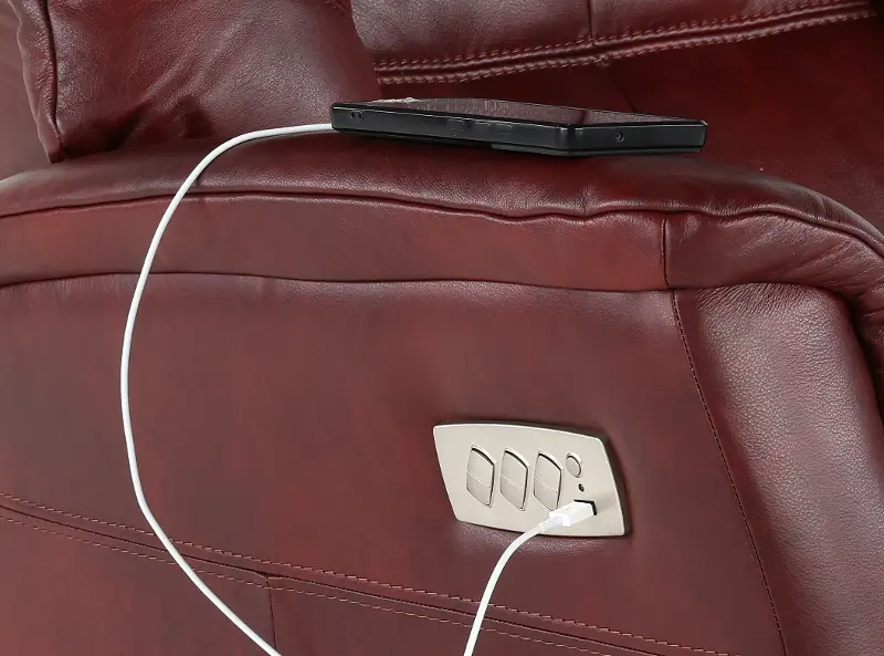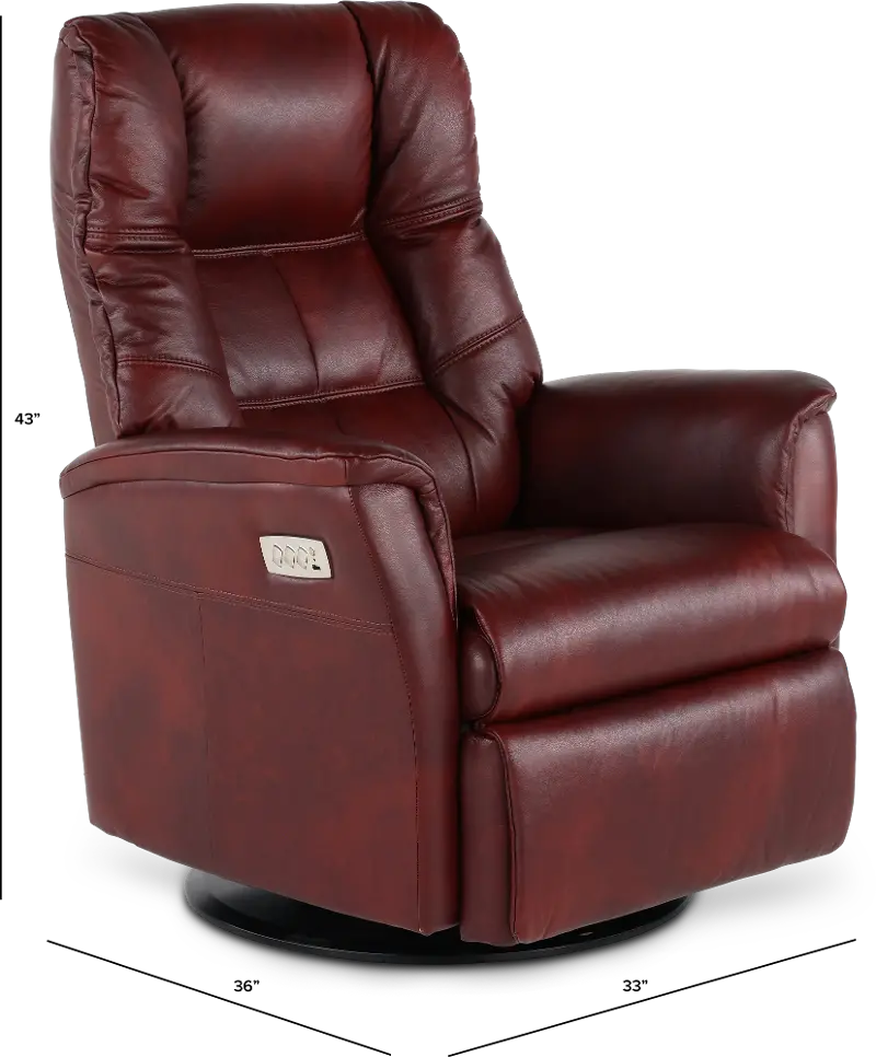 Boston Burgundy Leather Large Swivel Glider Power Recliner