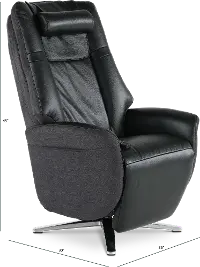 This power recliner also features massage and heat for the ultimate comfort. The black leather seat is complimented with polyester sides and back, offering a sleek and modern look. Find your zen with the Zen Collection today!