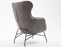 Upholstered in a durable leather-look fabric, this sophisticated chair has piped edges, beautiful stitching details, and black metal legs that create a rich and inviting look.