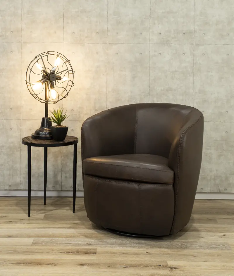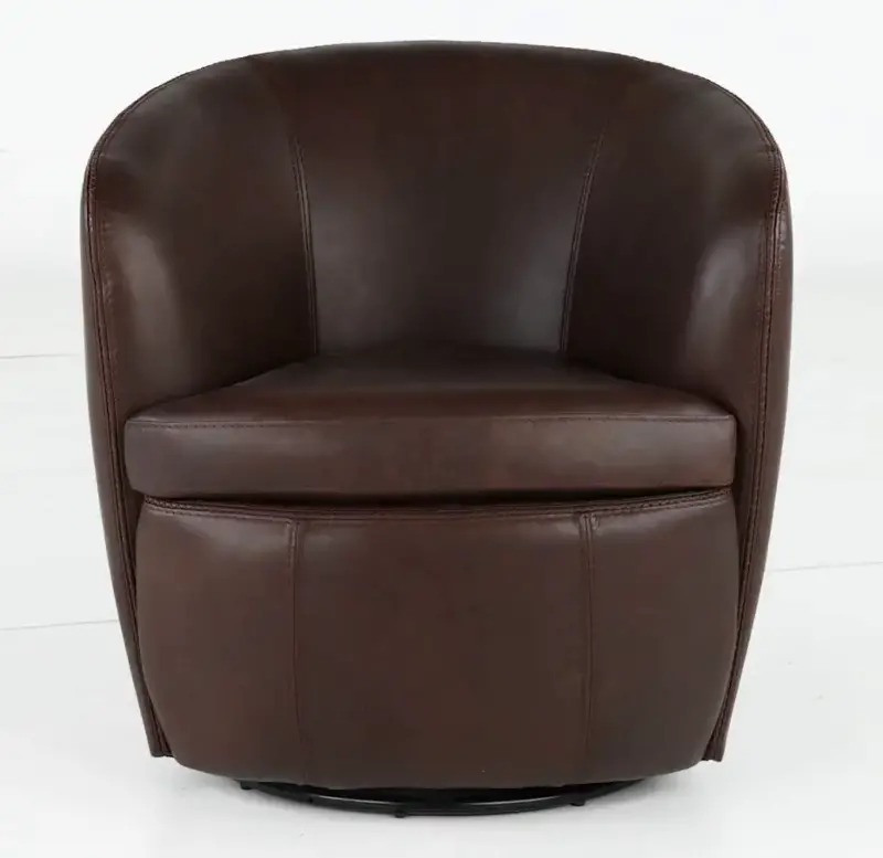 This low-profile barrel seat is wrapped in glove-soft leather, offering 360-degree swivel action to allow for quick pivots in any direction. Bold decorative stitching elevates this chair to the next level, securing its place as a tried and true staple piece in your living space.