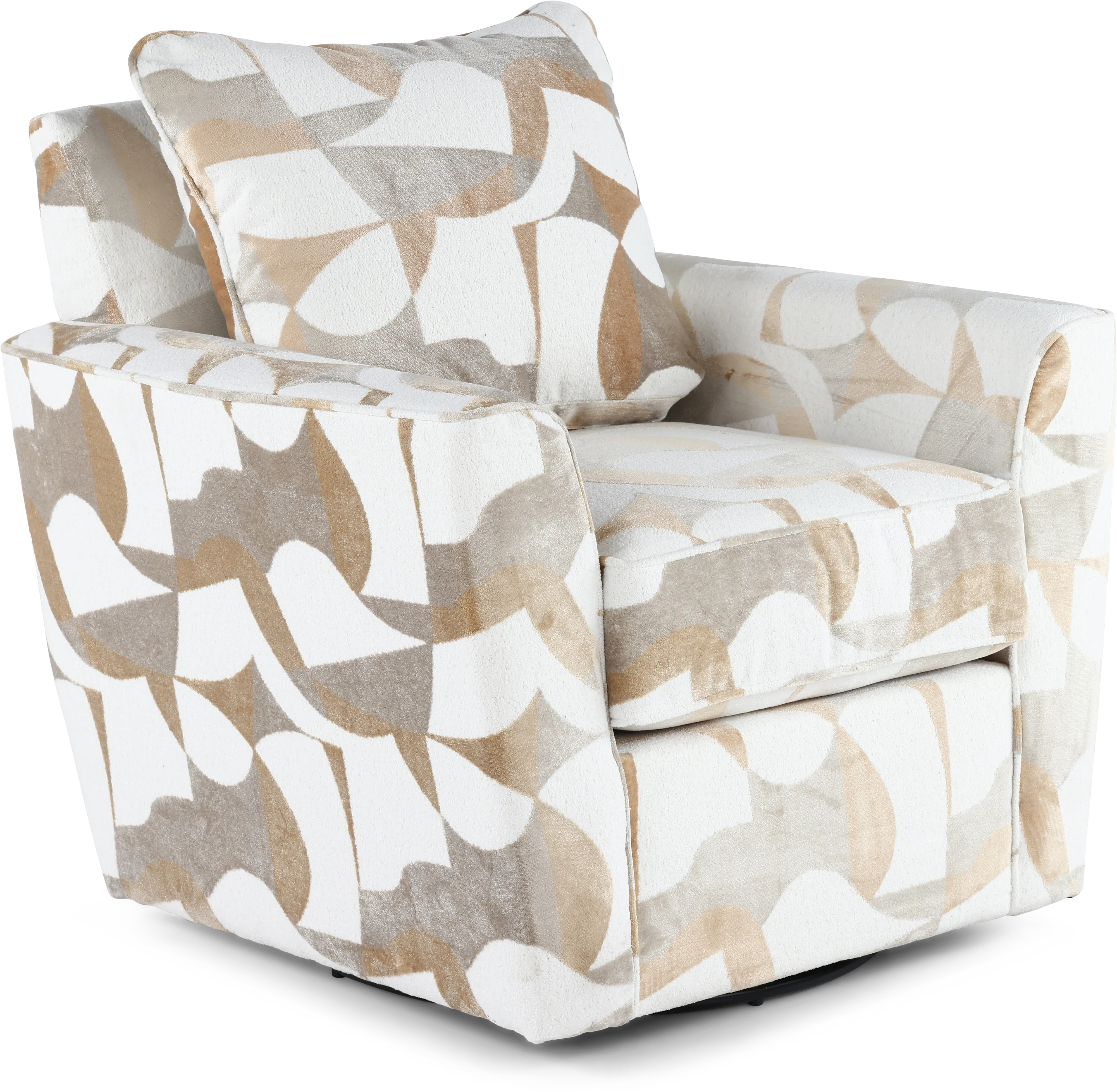 Durably crafted, this accent chair features a streamlined silhouette covered in neutral-hued geometric pattern fabric. The extra-thick foam seat cushion offers soft, comfortable support, while its feather-down back cushion makes relaxing hard to resist.