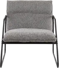 This chair features a padded upholstered seat and backrest. The black metal frame provides durable support and contributes to the industrial style of the chair. Use as seating in your living room, bedroom, or office.