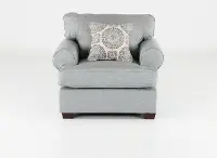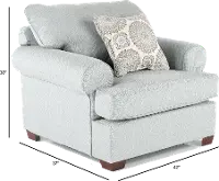 The Alison mist blue-gray chair offers classic, comfortable shapes and a fresh, inviting design.