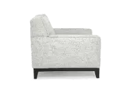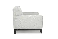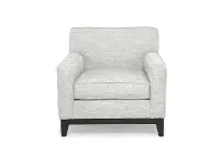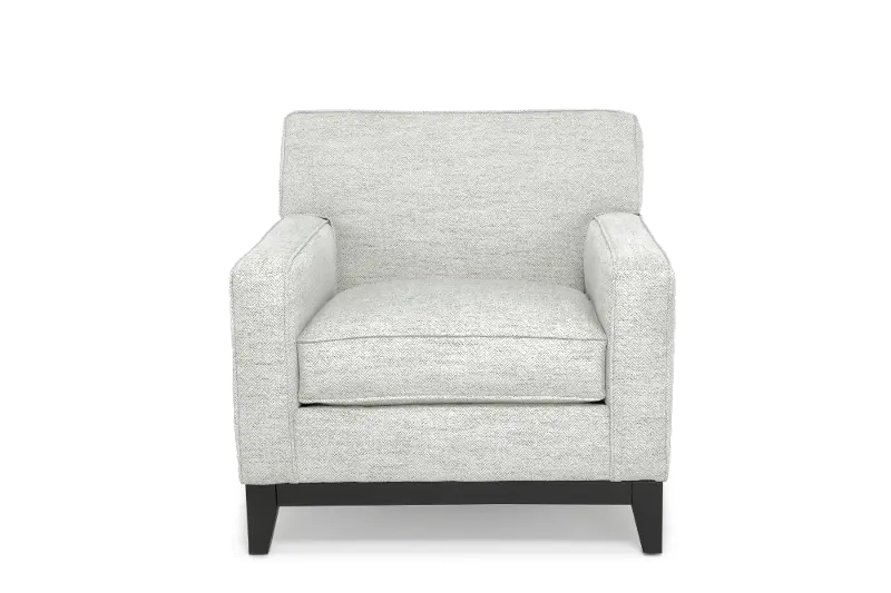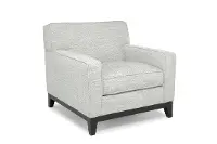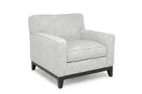 Its welcoming silhouette is sturdily crafted and artfully upholstered in an inviting and neutral fabric. Track arms and clean lines add to the chair's contemporary charm.