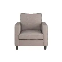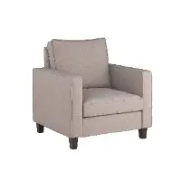 Supported by a wood frame, durable rubberwood legs, and wrapped in durable brushed linen-like polyester upholstery, this chair features clean lines and a cozy back cushion that's easy to sink into. Showcasing an understated look that will never go out of style.