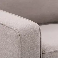 - Upholstered in durable taupe linen-like polyester fabric