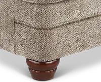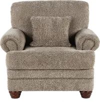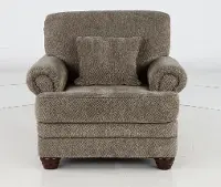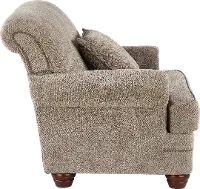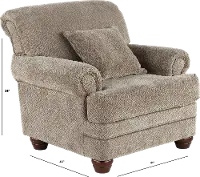 This chair's enduring silhouette with charming curves and subtly rolled arms is sure to enhance both formal and informal living spaces. Its neutral upholstery is beautifully accented with 1 toss pillow and time-honored nail-head trim.