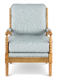 - Classic yet casual armchair with an open-back spindle design and turned-wood detailing on front legs
