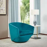 A vivid focal point to your living room, this emerald swivel chair from RC Willey features a unique design.