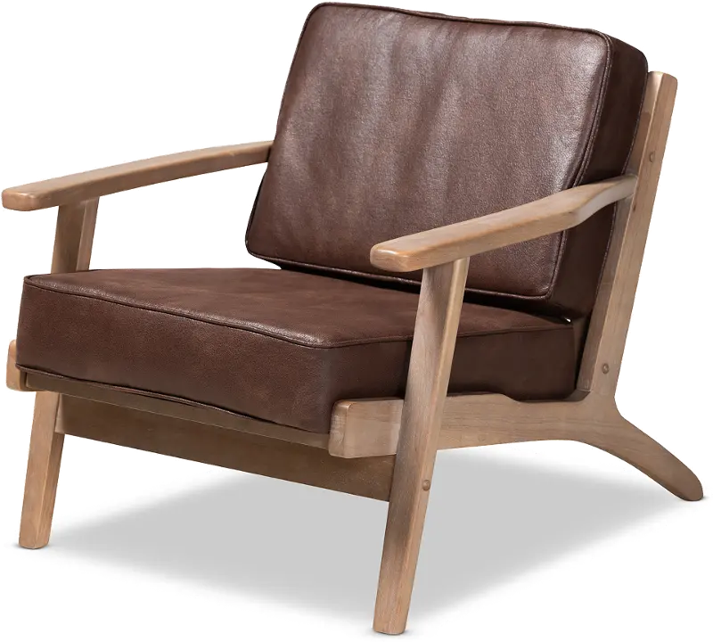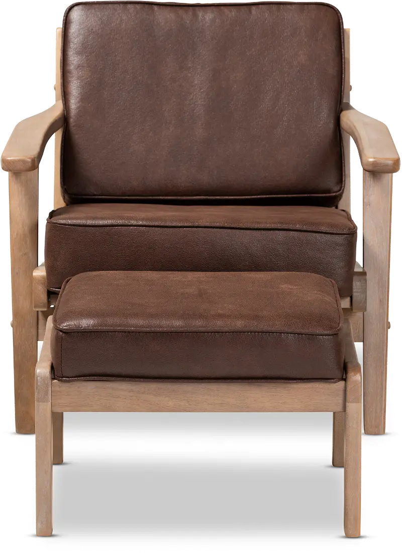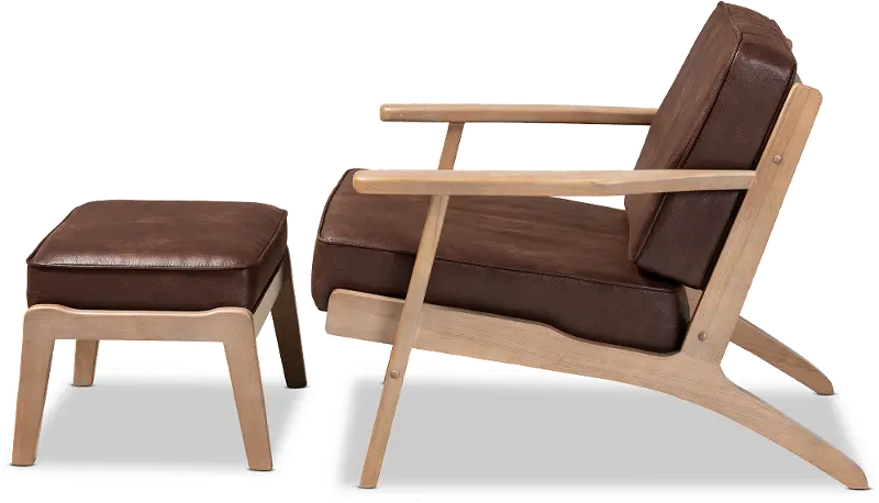Petra Mid Century Modern Brown Chair and Ottoman Set