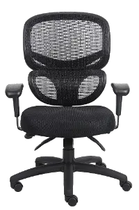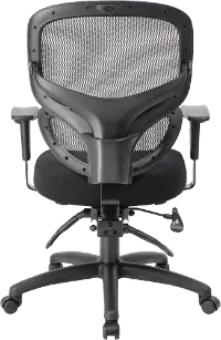 This multi-function task chair is made with SereneSoft fabric on the seat and a mesh back.