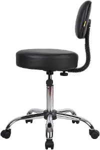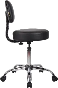 Made with a shiny chrome finish on the base and a sleek black vinyl upholstery on the seat, the Boss black Caressoft office chair with back makes an attractive addition to any office.