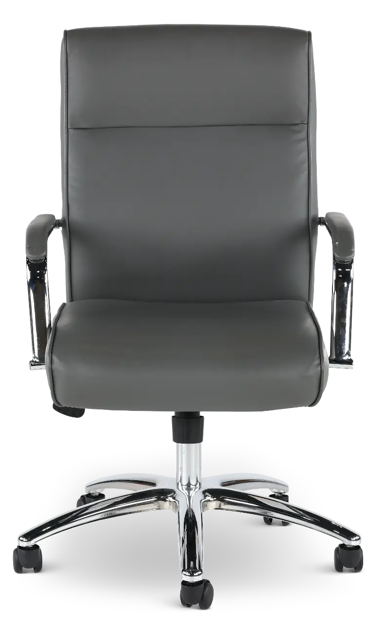 This stylish gray office chair from RC Willey has a high back for extra comfort and comes with chrome finished loop armrests, a 5-star base and wheels for increased mobility.