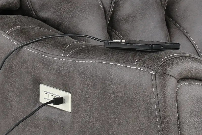 Designed for comfort and convenience, this recliner features power recline, power-adjustable headrests, and lumbar support, allowing you to easily relax. Charge your devices while you relax with the convenient charging ports. Wrapped in soft upholstery with sleek stitching details, the Anniston recliner is a luxurious addition to your home seating!