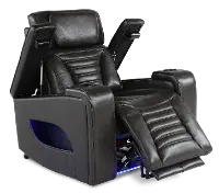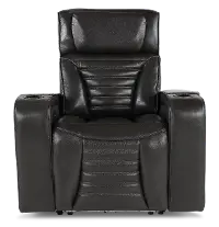 This power recliner offers the best in both comfort and modern style. Easily recline and adjust the headrest at the touch of a button. The luxurious dark gray leather and channeled stitching make this chair perfect for any modern living space. Treat yourself and your family to the luxurious comfort of the Transformer Collection!