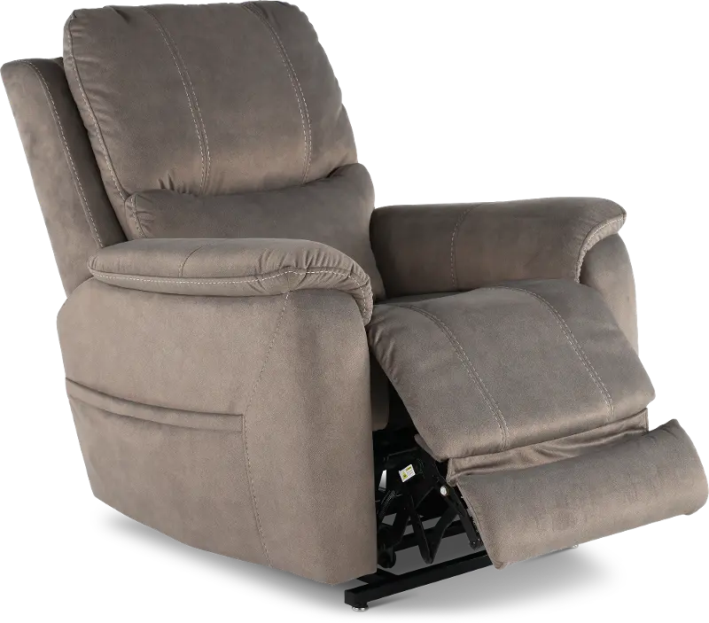 Easily recline, adjust the headrest, or lift to stand at the touch of a button. The footrest offers a 3" extension when reclined, making this chair ideal for taller frames. Upholstered in a soft, gray fabric, this recliner is durable and easy to clean. Add the Searcy lift chair to your living space today!