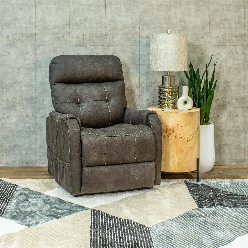 This single-motor chair allows you or your loved ones to easily recline or lift to stand at the touch of a button. The dark brown upholstery is durable and easy to clean. The charging port and storage pouch make this chair a convenient and comfortable addition to your living space.