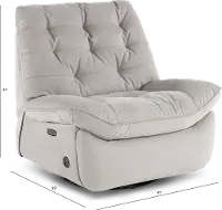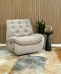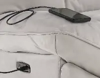 This relaxing chair features power recline and sits on a swiveling and rocking base. The control panel on the side also features a USB port so you can charge your device while relaxing! Add the Chloe Recliner to your living room or game room today!