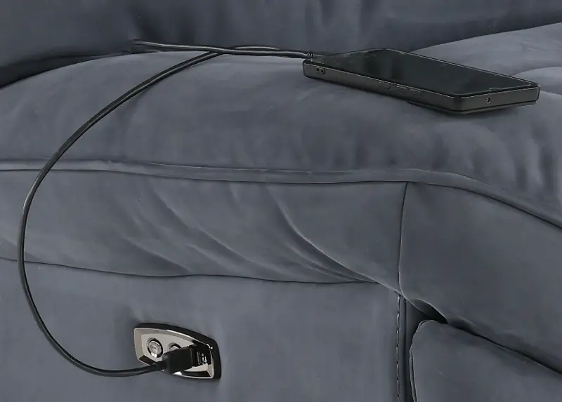 This relaxing chair features power recline and sits on a swiveling and rocking base. The control panel on the side also features a USB port so you can charge your device while relaxing! Add the Chloe Recliner to your living room or game room today!