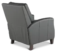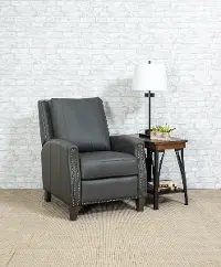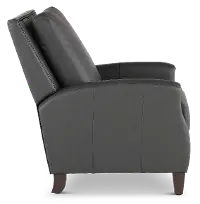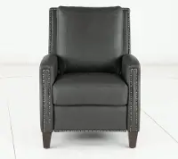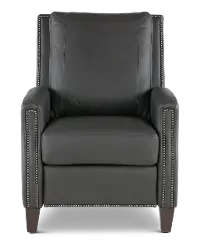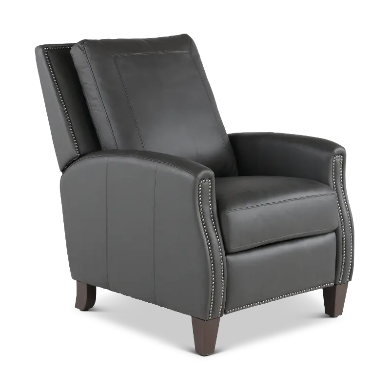 Upholstered in top-grain leather with a sleek leather-match design on the back and sides, this recliner features a refined high-leg profile with elegant nailhead trim. Its rich gray finish complements a wide range of home decor styles, from modern minimalist to classic traditional, making it a versatile addition to any living room or den. Enjoy luxurious relaxation with its 100% foam cushions and smooth manual pushback recline, ideal for both style and comfort.