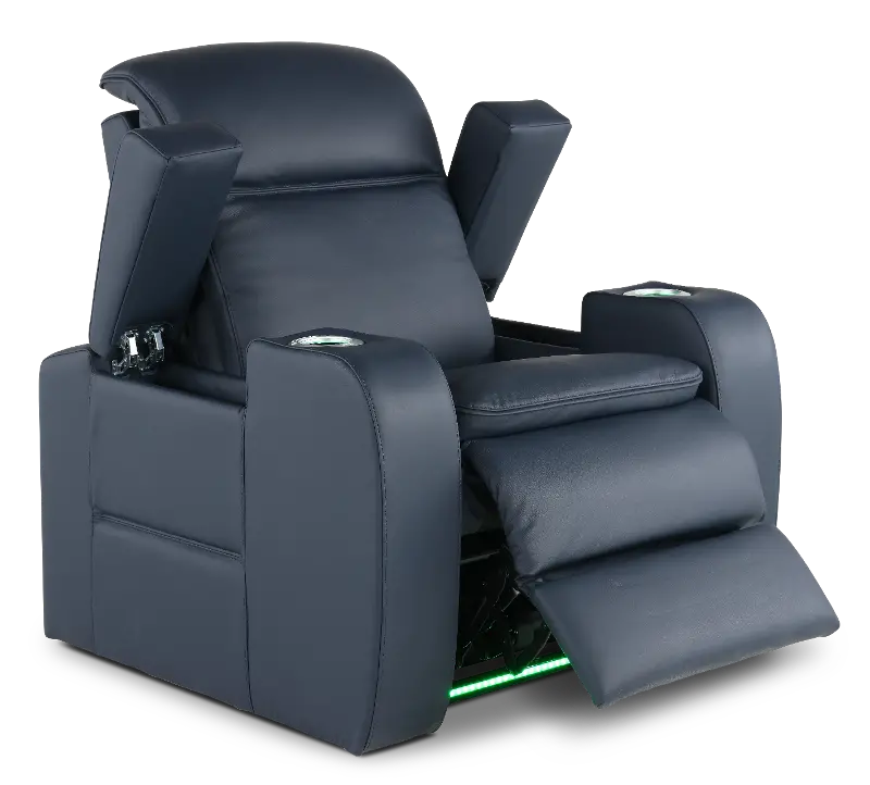 Perfect for your home theater, this power recliner offers a power-adjustable headrest and lumbar support for customizable comfort. With multicolor LED lights in the cupholder and under the footrest, you'll be able to see enough to enjoy your favorite drink without interrupting your movie. And with storage in the armrests, you can stash your favorite snacks or any other items you want close at hand. Upgrade your home theater today with the Vertex Collection!