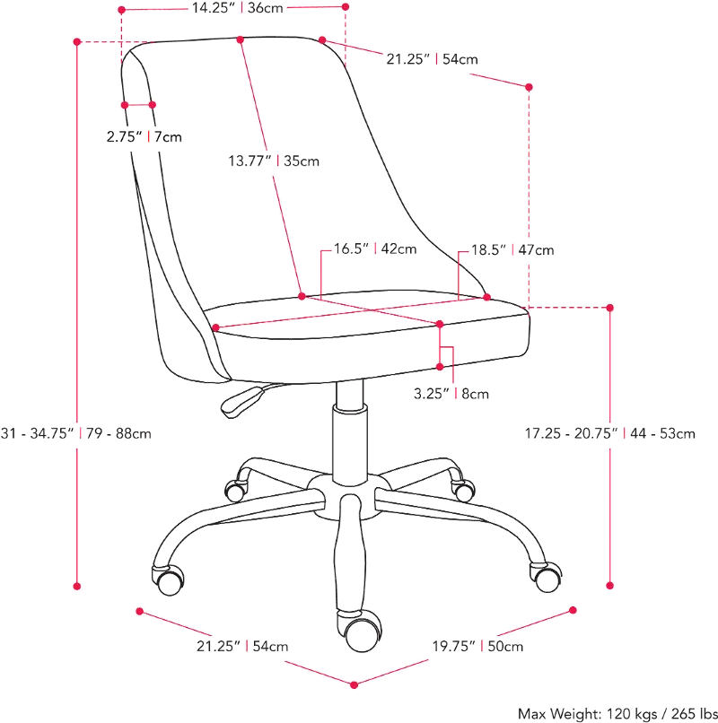 It showcases an armless design with a soft, comfortable seat cushion. This chair is upholstered in a classic woven upholstery and supported by a durable steel frame. With a five-star chrome base that helps you move from task to task with ease, it's the perfect finishing piece for any workspace.
