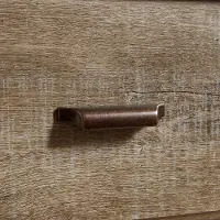 - Modern metal handles in a antique copper finish