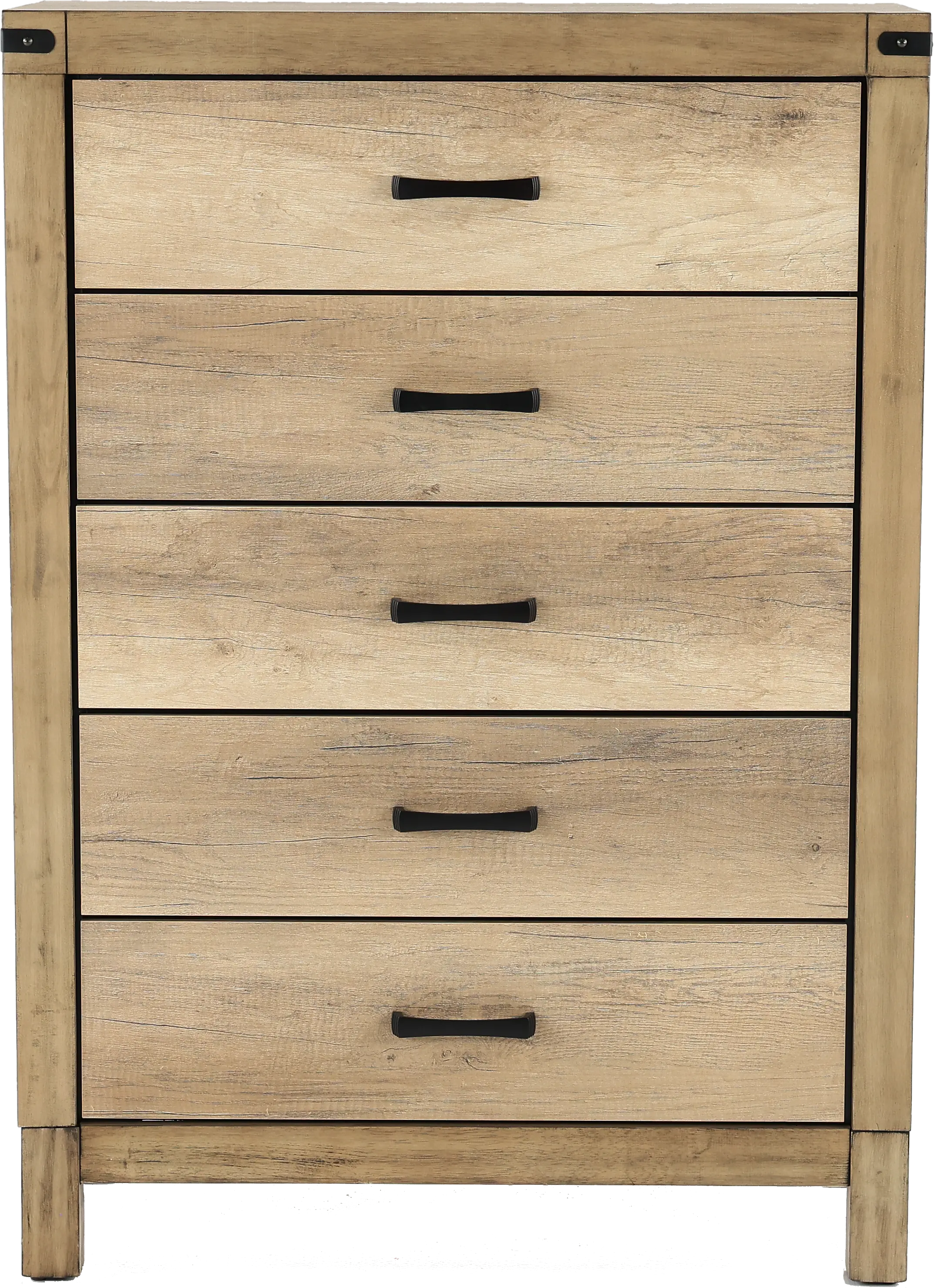 Now at RC Willey, the Matteo 5-drawer chest artfully combines convenient storage, contemporary styling, and a subtle touch of rustic charm.