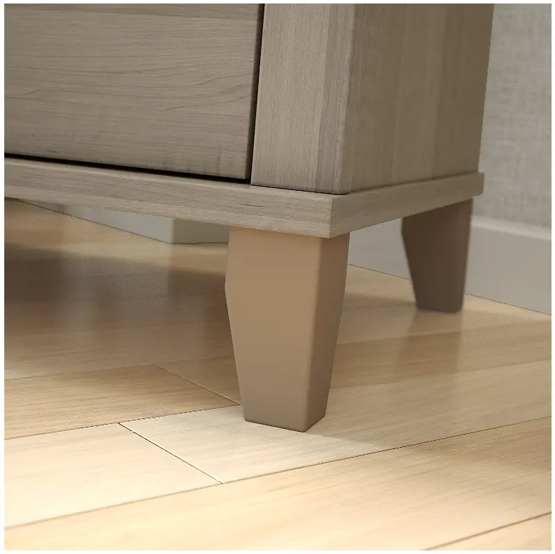 - Stylish tapered legs and metal hardware with Satin Nickel finish complete the contemporary Chest of Drawers