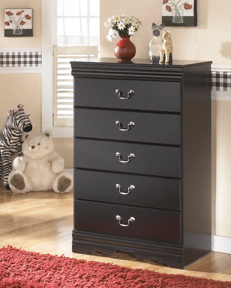 The Huey Vineyard chest of drawers features a classic, versatile design that is both timeless and stylish.