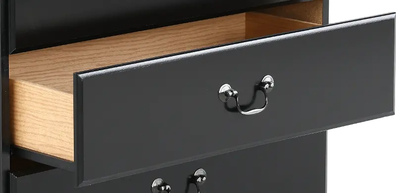 Its black finish and Louis Philippe-inspired moulding artfully combine to give you a piece that will add enduring appeal to your bedroom spaces.