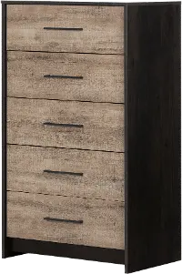 Modern Weathered Oak and Brown 5 Drawer Chest - South Shore