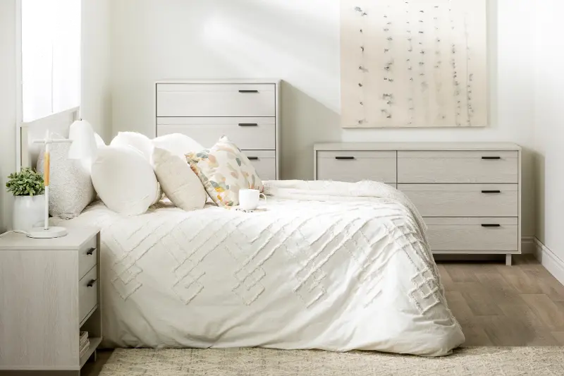 Modern Light Gray Oak Chest of Drawers - South Shore