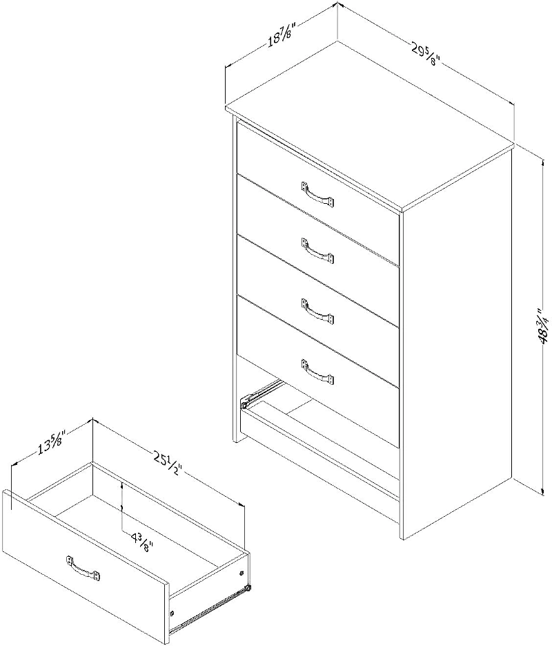- 5 drawers with metal slides that can hold up to 25 lbs. each