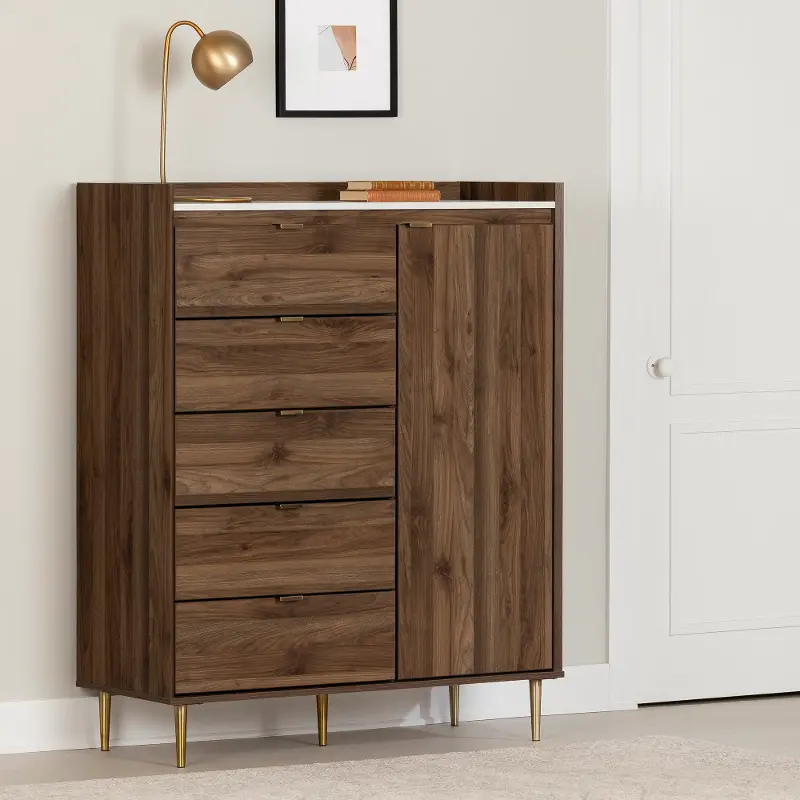 Hype Walnut Brown 5-Drawer Chest of Drawers - South Shore