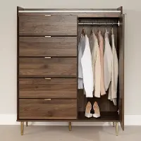 This is just what you are looking for. The five large drawers on metal slides can hold all your clothes, from winter sweaters to small summer tank tops. There is also a pole in the space behind the door, so you can hang up dresses, jackets, and button-downs. Enjoy the fancy things in life with a stone-look surface. The top is faux marble, but amazingly realistic. You’ll like the effect and the price! You won’t have any trouble finding what you want to wear in the morning when you’re in a hurry!