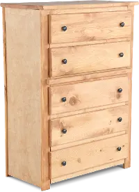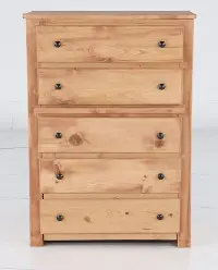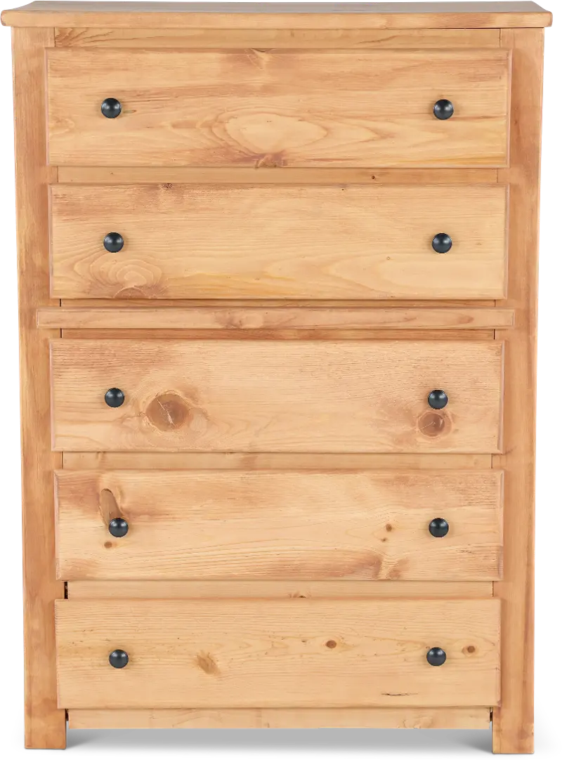 Solidly built and drawing on rustic inspiration, this chest features 5 drawers, crisp lines, and a versatile light honey finish. Its clean silhouette and rugged good looks make it a functional, stylish piece ideal for a range of tastes.